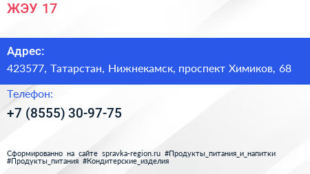 ЖЭУ-17 по адресу 423577, Татарстан, Нижнекамск, проспект Химиков, 68 в дальнейшем Организация, размещена в следующих категориях: