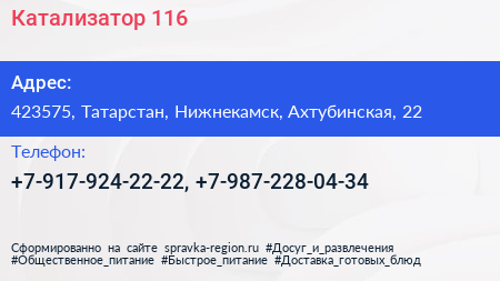 Катализатор-116 по адресу 423575, Татарстан, Нижнекамск, Ахтубинская, 22 в дальнейшем Организация, размещена в следующих категориях: