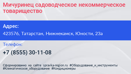 Мичуринец, садоводческое некоммерческое товарищество по адресу 423576, Татарстан, Нижнекамск, Юности, 23а в дальнейшем Организация, размещена в следующих категориях: