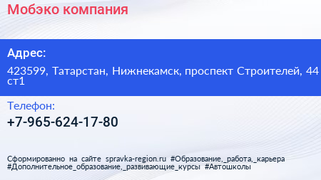 Мобэко, компания по адресу 423599, Татарстан, Нижнекамск, проспект Строителей, 44 ст1 в дальнейшем Организация, размещена в следующих категориях: