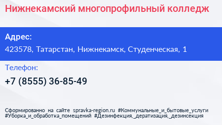 Нижнекамский многопрофильный колледж по адресу 423578, Татарстан, Нижнекамск, Студенческая, 1 в дальнейшем Организация, размещена в следующих категориях: