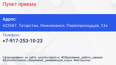 Пункт приема по адресу 423587, Татарстан, Нижнекамск, Первопроходцев, 11е в дальнейшем Организация, размещена в следующих категориях:
