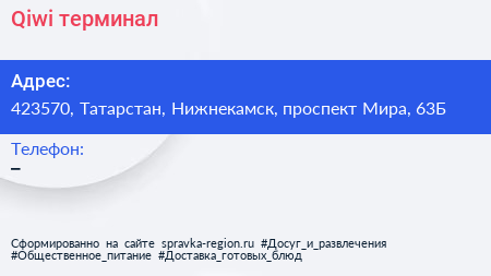 Qiwi, терминал по адресу 423570, Татарстан, Нижнекамск, проспект Мира, 63Б в дальнейшем Организация, размещена в следующих категориях: