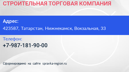 СТРОИТЕЛЬНАЯ ТОРГОВАЯ КОМПАНИЯ по адресу 423587, Татарстан, Нижнекамск, Вокзальная, 33 в дальнейшем Организация, размещена в следующих категориях: