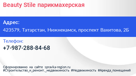 Beauty & Stile, парикмахерская по адресу 423579, Татарстан, Нижнекамск, проспект Вахитова, 2Б в дальнейшем Организация, размещена в следующих категориях: