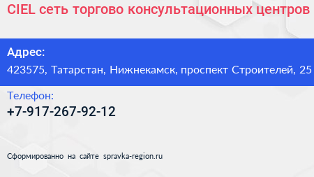 CIEL, сеть торгово-консультационных центров по адресу 423575, Татарстан, Нижнекамск, проспект Строителей, 25 в дальнейшем Организация, размещена в следующих категориях: