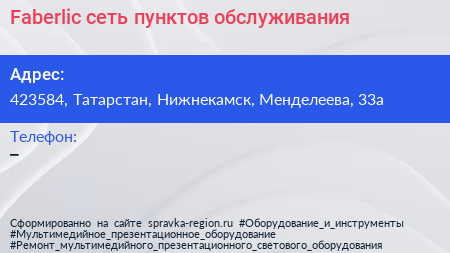 Faberlic, сеть пунктов обслуживания по адресу 423584, Татарстан, Нижнекамск, Менделеева, 33а в дальнейшем Организация, размещена в следующих категориях: