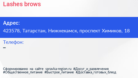 Lashes & brows по адресу 423578, Татарстан, Нижнекамск, проспект Химиков, 18 в дальнейшем Организация, размещена в следующих категориях:
