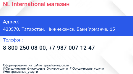 NL International, магазин по адресу 423570, Татарстан, Нижнекамск, Баки Урманче, 15 в дальнейшем Организация, размещена в следующих категориях: