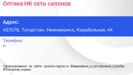 Оптика-НК, сеть салонов по адресу 423578, Татарстан, Нижнекамск, Корабельная, 44 в дальнейшем Организация, размещена в следующих категориях: