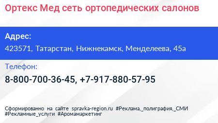 Ортекс Мед, сеть ортопедических салонов по адресу 423571, Татарстан, Нижнекамск, Менделеева, 45а в дальнейшем Организация, размещена в следующих категориях:
