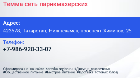 Темма, сеть парикмахерских по адресу 423578, Татарстан, Нижнекамск, проспект Химиков, 25 в дальнейшем Организация, размещена в следующих категориях: