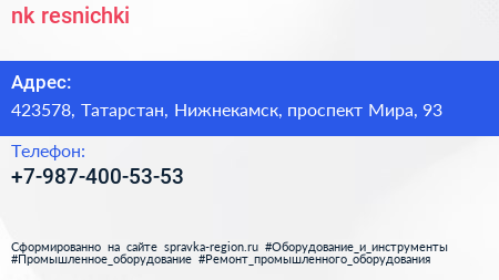 nk.resnichki по адресу 423578, Татарстан, Нижнекамск, проспект Мира, 93 в дальнейшем Организация, размещена в следующих категориях: