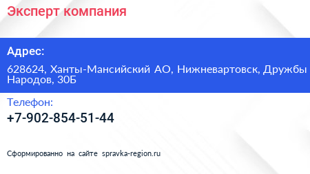 Эксперт, компания по адресу 628624, Ханты-Мансийский АО, Нижневартовск, Дружбы Народов, 30Б в дальнейшем Организация, размещена в следующих категориях: