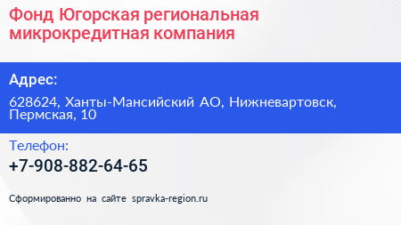 Фонд Югорская региональная микрокредитная компания по адресу 628624, Ханты-Мансийский АО, Нижневартовск, Пермская, 10 в дальнейшем Организация, размещена в следующих категориях:
