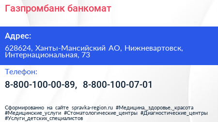 Газпромбанк, банкомат по адресу 628624, Ханты-Мансийский АО, Нижневартовск, Интернациональная, 73 в дальнейшем Организация, размещена в следующих категориях: