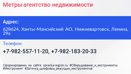 Метры, агентство недвижимости по адресу 628624, Ханты-Мансийский АО, Нижневартовск, Ленина, 29а в дальнейшем Организация, размещена в следующих категориях:
