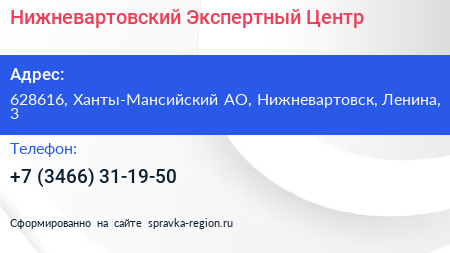 Нижневартовский Экспертный Центр по адресу 628616, Ханты-Мансийский АО, Нижневартовск, Ленина, 3 в дальнейшем Организация, размещена в следующих категориях: