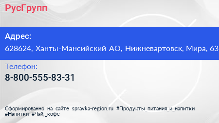 РусГрупп по адресу 628624, Ханты-Мансийский АО, Нижневартовск, Мира, 63 в дальнейшем Организация, размещена в следующих категориях: