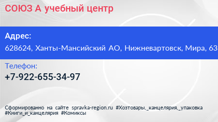 СОЮЗ-А, учебный центр по адресу 628624, Ханты-Мансийский АО, Нижневартовск, Мира, 63 в дальнейшем Организация, размещена в следующих категориях: