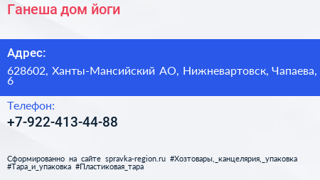 Ганеша, дом йоги по адресу 628602, Ханты-Мансийский АО, Нижневартовск, Чапаева, 6 в дальнейшем Организация, размещена в следующих категориях: