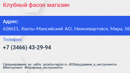 Клубный фасон, магазин по адресу 628611, Ханты-Мансийский АО, Нижневартовск, Мира, 58 в дальнейшем Организация, размещена в следующих категориях: