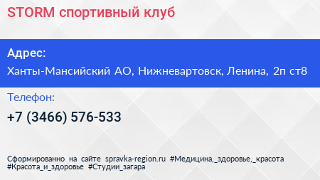STORM, спортивный клуб по адресу Ханты-Мансийский АО, Нижневартовск, Ленина, 2п ст8 в дальнейшем Организация, размещена в следующих категориях: