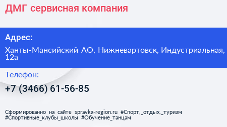 ДМГ, сервисная компания по адресу Ханты-Мансийский АО, Нижневартовск, Индустриальная, 12а в дальнейшем Организация, размещена в следующих категориях: