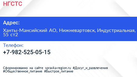 НГСТС по адресу Ханты-Мансийский АО, Нижневартовск, Индустриальная, 55 ст2 в дальнейшем Организация, размещена в следующих категориях: