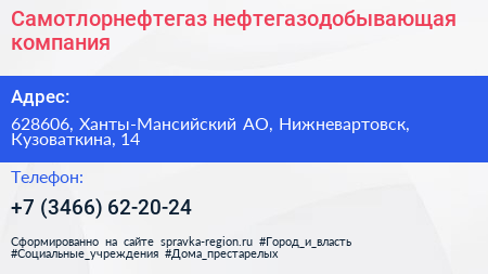 Самотлорнефтегаз, нефтегазодобывающая компания по адресу 628606, Ханты-Мансийский АО, Нижневартовск, Кузоваткина, 14 в дальнейшем Организация, размещена в следующих категориях: