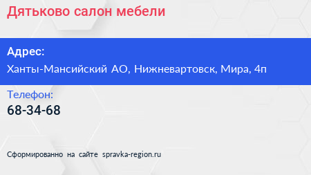 Дятьково, салон мебели по адресу Ханты-Мансийский АО, Нижневартовск, Мира, 4п в дальнейшем Организация, размещена в следующих категориях: