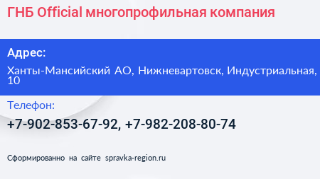 ГНБ-Official, многопрофильная компания по адресу Ханты-Мансийский АО, Нижневартовск, Индустриальная, 10 в дальнейшем Организация, размещена в следующих категориях:
