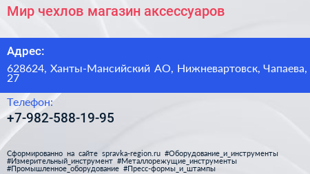 Мир чехлов, магазин аксессуаров по адресу 628624, Ханты-Мансийский АО, Нижневартовск, Чапаева, 27 в дальнейшем Организация, размещена в следующих категориях: