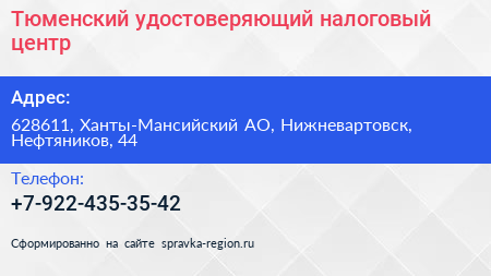 Тюменский удостоверяющий налоговый центр по адресу 628611, Ханты-Мансийский АО, Нижневартовск, Нефтяников, 44 в дальнейшем Организация, размещена в следующих категориях: