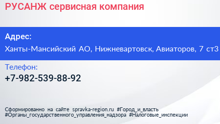 РУСАНЖ, сервисная компания по адресу Ханты-Мансийский АО, Нижневартовск, Авиаторов, 7 ст3 в дальнейшем Организация, размещена в следующих категориях: