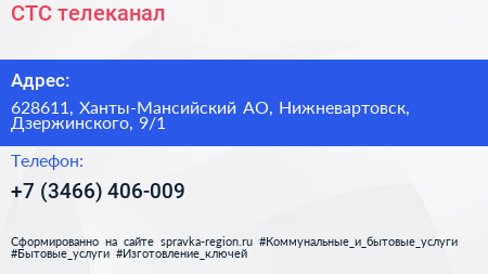 СТС, телеканал по адресу 628611, Ханты-Мансийский АО, Нижневартовск, Дзержинского, 9/1 в дальнейшем Организация, размещена в следующих категориях: