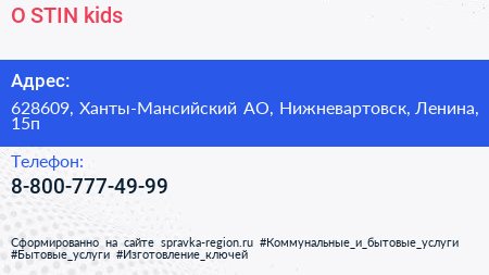 O`STIN kids по адресу 628609, Ханты-Мансийский АО, Нижневартовск, Ленина, 15п в дальнейшем Организация, размещена в следующих категориях: