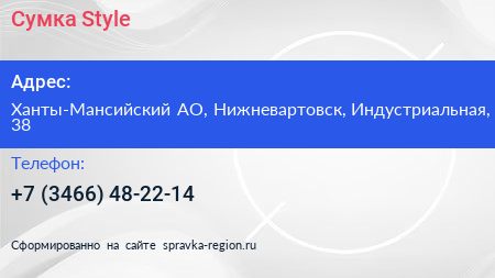 Сумка-Style по адресу Ханты-Мансийский АО, Нижневартовск, Индустриальная, 38 в дальнейшем Организация, размещена в следующих категориях: