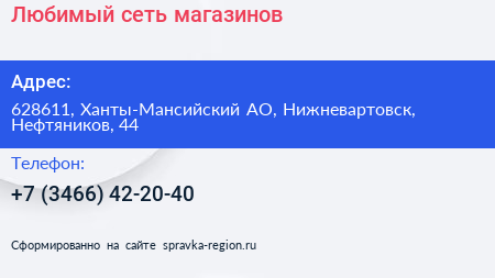 Любимый, сеть магазинов по адресу 628611, Ханты-Мансийский АО, Нижневартовск, Нефтяников, 44 в дальнейшем Организация, размещена в следующих категориях: