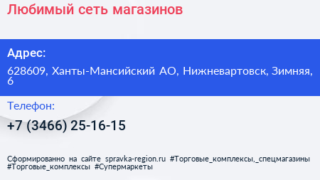 Любимый, сеть магазинов по адресу 628609, Ханты-Мансийский АО, Нижневартовск, Зимняя, 6 в дальнейшем Организация, размещена в следующих категориях: