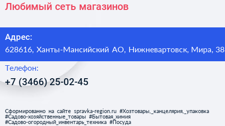 Любимый, сеть магазинов по адресу 628616, Ханты-Мансийский АО, Нижневартовск, Мира, 38 в дальнейшем Организация, размещена в следующих категориях: