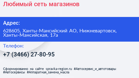 Любимый, сеть магазинов по адресу 628605, Ханты-Мансийский АО, Нижневартовск, Ханты-Мансийская, 17а в дальнейшем Организация, размещена в следующих категориях: