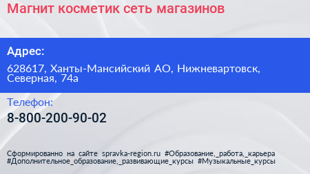 Магнит косметик, сеть магазинов по адресу 628617, Ханты-Мансийский АО, Нижневартовск, Северная, 74а в дальнейшем Организация, размещена в следующих категориях: