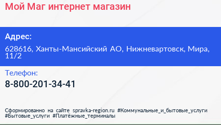 Мой Маг, интернет-магазин по адресу 628616, Ханты-Мансийский АО, Нижневартовск, Мира, 11/2 в дальнейшем Организация, размещена в следующих категориях: