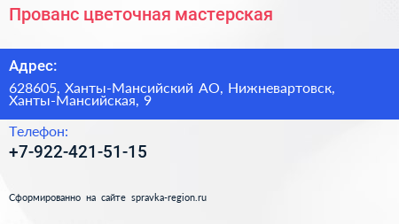 Прованс, цветочная мастерская по адресу 628605, Ханты-Мансийский АО, Нижневартовск, Ханты-Мансийская, 9 в дальнейшем Организация, размещена в следующих категориях: