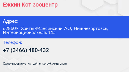 Ёжкин Кот, зооцентр по адресу 628609, Ханты-Мансийский АО, Нижневартовск, Интернациональная, 11а в дальнейшем Организация, размещена в следующих категориях: