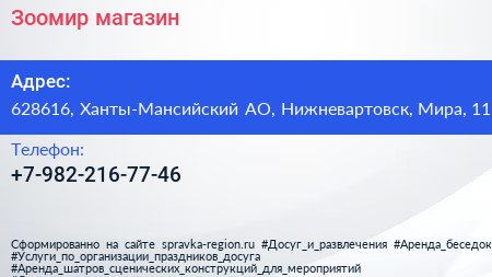 Зоомир, магазин по адресу 628616, Ханты-Мансийский АО, Нижневартовск, Мира, 11 в дальнейшем Организация, размещена в следующих категориях: