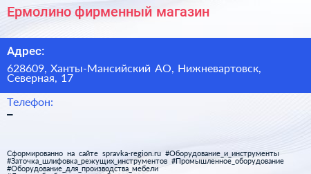 Ермолино, фирменный магазин по адресу 628609, Ханты-Мансийский АО, Нижневартовск, Северная, 17 в дальнейшем Организация, размещена в следующих категориях: