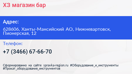 ХЗ, магазин-бар по адресу 628606, Ханты-Мансийский АО, Нижневартовск, Пионерская, 12 в дальнейшем Организация, размещена в следующих категориях: