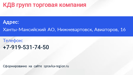 КДВ-групп, торговая компания по адресу Ханты-Мансийский АО, Нижневартовск, Авиаторов, 16 в дальнейшем Организация, размещена в следующих категориях: